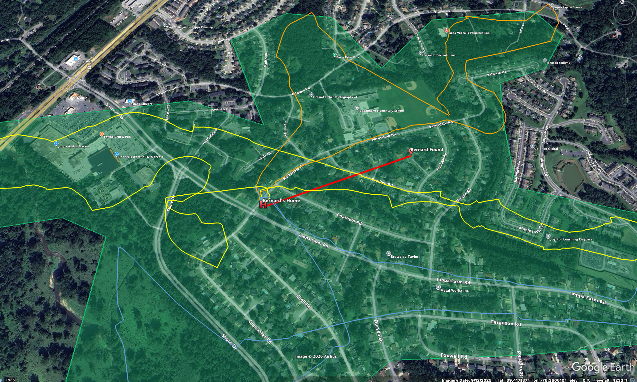*NOTE* - If your pet is found, we will help coordinate ground recovery - our pilots will NOT recover your pet. Why do we do this? Lost pets are often scared and are likely to flee or even bite a stranger. Also if we pack up the drone to go recover your pet, there is a chance it will leave the area and we will have to begin the search again. Instead, we will provide a pin that you can scan with your phone that shows where the pet is, then keep “eyes” on the pet and assist in guiding you there.